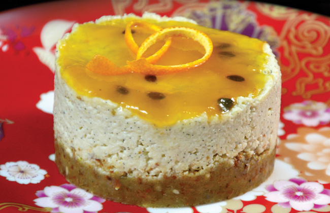Refrigerate for at least two hours then top with fresh passionfruit and orange zest to serve.