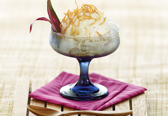 Serve immediately as soft ice cream, garnished with coconut (if desired). Or transfer to an airtight container and freeze until firm. Let stand at room temperature for five minutes before scooping.